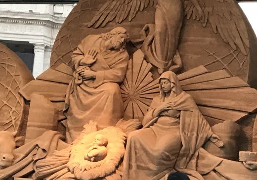 Dieses Jahr die Krippe in Sankt Peters Platz wurde aus dem Sand geformt, der aus der Badeortstadt Jesolo (Venedig) stammt. Die Stadt Jesolo die Sandkrippe seit 2002 organisiert. Die Krippe ist eine Überlieferung von Franz von Assisi. Der heilige Franz von Assisi, kam in der Vorweihnachtszeit des Jahres 1223 auf die Idee, in den Bergen Umbriens ein neues Bethlehem zu errichten.