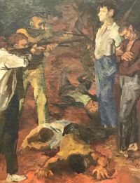 Renato Guttuso (1911 - 1987) war ein italienischer Maler, Zeichner, Illustrator, Bühnenbildner, Kunstkritiker, Essayist und Politiker. Er vertrat einen moralisch motivierten Realismus, der sich vor allem mit den historischen und zeitgenössischen Realismen auseinandersetzte. Der Maler wurde am 26. Dezember 1911 in Bagheria (Sizilien) geboren. Schon als Kind entdeckte er seine Liebe zur Malerei und erlernte bei einem sizilianischen Karrenmaler den Umgang mit Farbe und Pinsel. Nach dem Krieg setzte er sich an die Führung der neuen Künstlerfront und nach 1948 erschuf er die Künstlergruppe „Fronte nuovo delle arti" und wurde zu einem wichtigen Vertreter des Realismus.